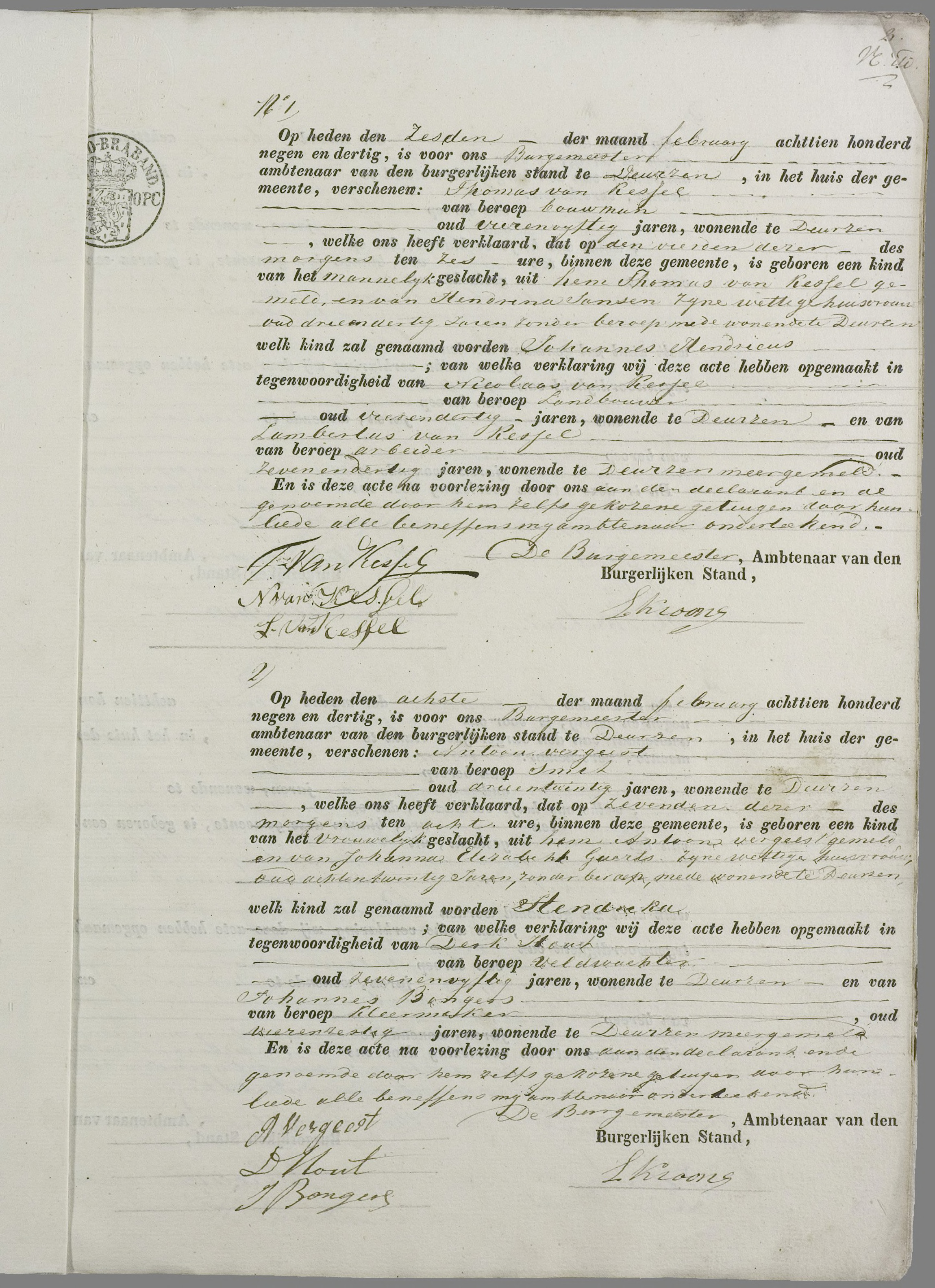 Johannes Hendricus van Kessel geboorte