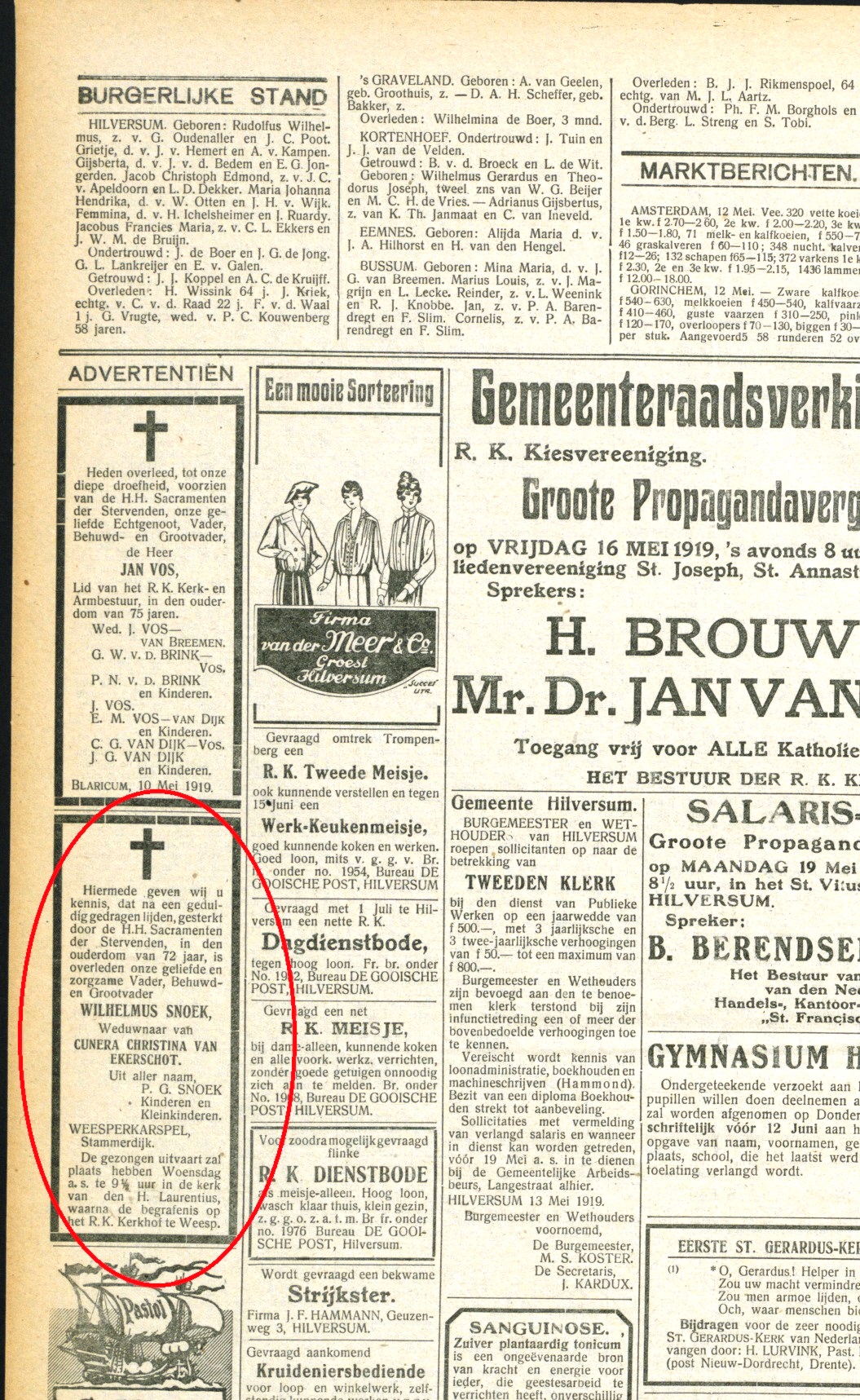Wilhelmus Snoek overlijden