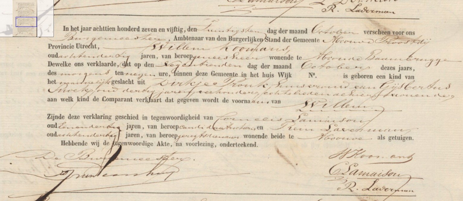 Wilhelmus Thaddeus Snoek geboorte