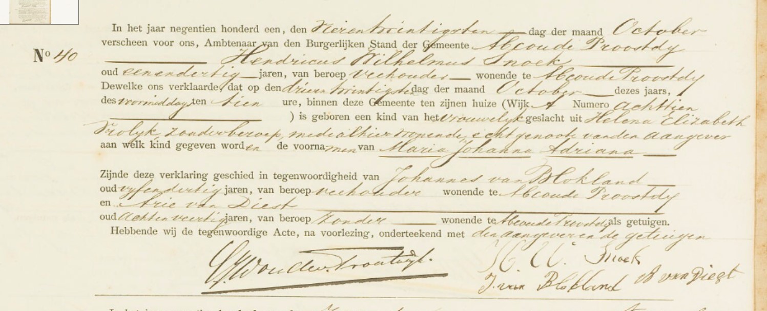 Maria Johanna Adriana Snoek geboorte