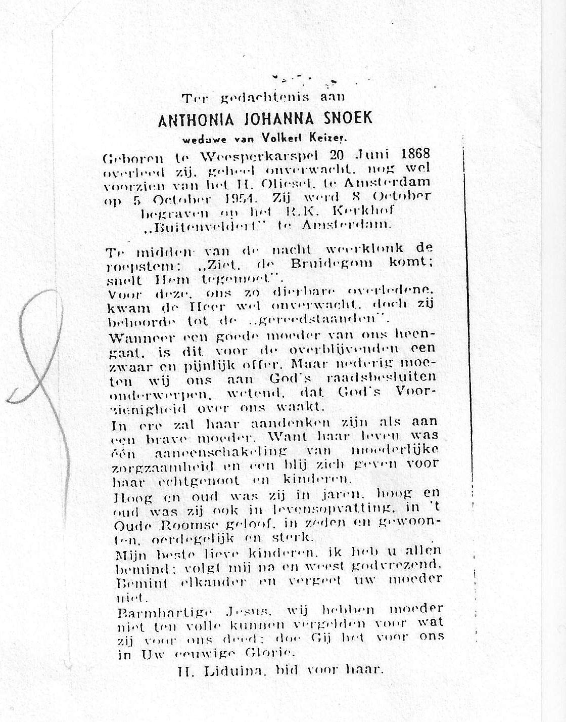 Anthonia Johanna Snoek death